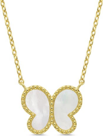 Iridescent mother-of-pearl adds luster to the flower-shaped pendant of this delicate necklace that comes packaged and ready for gifting.