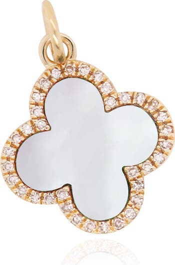 This sparkly Mother of Pearl Diamond Clover Charm is a charming classic! Slide it onto any chain for an elevated look.