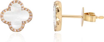 Mother of Pearl Diamond Clover Stud Earrings