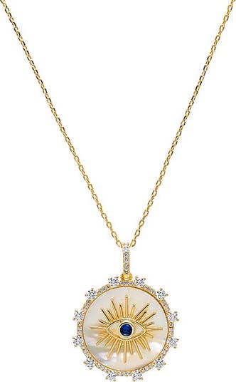 Let the Mother of Pearl Evil Eye Pendant Necklace by Adina Eden lead your accessory game with its sleek Necklace design. This gold pendant necklace for women captures the essence of everyday luxury, available in Mother of Pearl. When you want your outfit to feel complete, you can trust this piece to level up any look without making it feel overdone or excessive. Mix this gold plated pendant necklace with styles from our Charms & Pendants collection to make your everyday styling effortless. The kind of essential you didn't know you needed—until now.