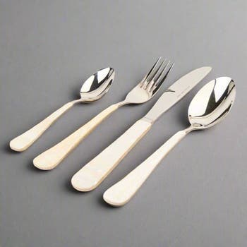 Product Story Elevate your dining experience with this set of Mother of Pearl utensils, including a fork, knife, spoon, and teaspoon. Each piece is expertly handcrafted with Japanese stainless steel and luminous mother-of-pearl handles, merging luxury and function. Perfect for special occasions or adding a touch of refinement to everyday meals. Each purchase helps sustain the livelihood of maker communities in the Philippines and supports the craft of Filipino makers around the world. Details • Set 0f 4 comes with a spoon, fork, knife, and teaspoon • Materials: stainless steel, mother of pearl • Items may vary slightly in color or size: these details reveal the human hands that shaped them. Care • Handwash only