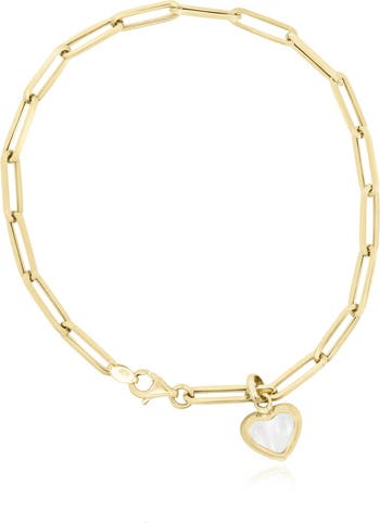 Mother of Pearl Heart Paperclip Bracelet