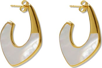 These sterling silver hoop earrings are plated in 18-karat gold and inset with mother-of-pearl.