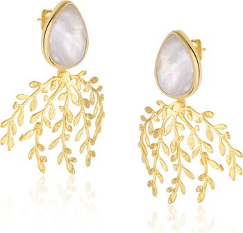 Mother Of Pearl Olive Branch Sterling Silver Earring