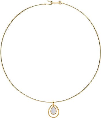 Mother of Pearl Open Teardrop Thin Wire Choker Necklace