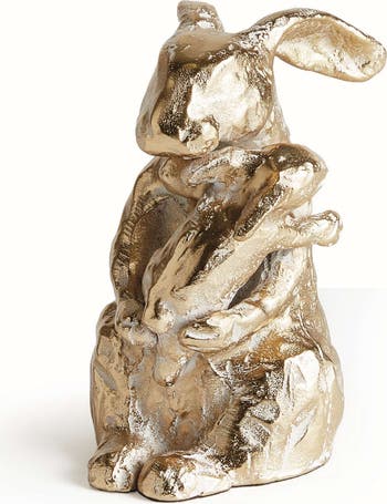 A visual metaphor of a mother's love in a white ash gold finish, this rabbit sculpture is an endearing accent for Spring or all year round. Tuck into a bookshelf or sit atop a desk or ottoman for a touch of charm.