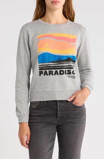 Cut for a cropped, boxy fit and splashed with the perfect lake sunset, this sweatshirt is giving 'wish you were here' vibes.
