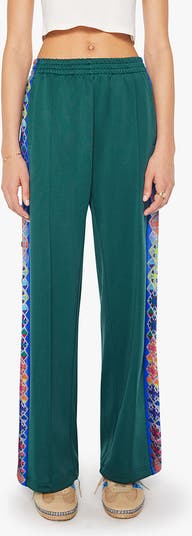 Athleisure meets hippie-chic in these retro-green track pants cut in a loose, straight-leg silhouette with vibrantly embroidered panels down the outseams.