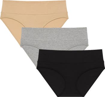 Designed for comfort, this value Motherhood Women's Maternity Cotton Foldover Waistband Brief Panty, 3-Pack features soft, supportive cotton/Spandex fabrication, a wide waistband with foldover function for custom coverage and a comfortable fit that offers full back coverage.