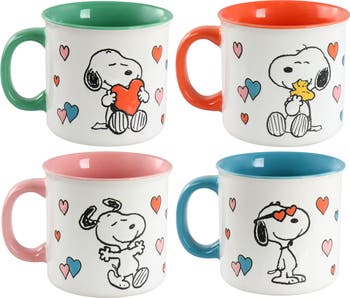 What better way to have your morning coffee than with your favorite Peanuts character? This four piece set is perfect for gifting to loved ones on special occasions and holidays, or just keeping in your kitchen for when you need to feel a little extra love. The Mother's Love Peanuts mug set comes with mugs in four assorted colors and designs. Constructed with durable stoneware that is dishwasher and microwave safe for easy re-heat and clean up.