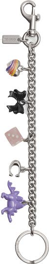 An eclectic mix of charms add signature appeal to a chain that can elevate your favorite bag or keep track of your keys with whimsical flair.