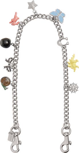 An eclectic mix of whimsical charms brings playful personality to this chain strap designed to clip onto your favorite bag.