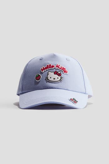 Cap in cotton twill with motif details and embroidered eyelets.