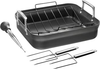 Includes: Roasting pan, rack, baster and turkey forks.