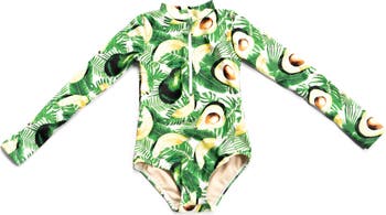 A sleek one-piece swimsuit gets a high-performance update with breathable, quick-drying fabric that's made to protect her from the sun's harmful rays. The long sleeves have thumbholes in the cuffs to keep them from creeping up.