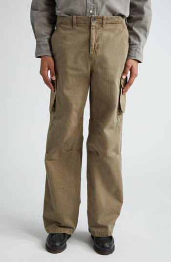 Plenty of pockets underscore the utility look of cargo pants crafted in a relaxed, straight-leg cut with pleat-eased knees from cotton herringbone fabric.