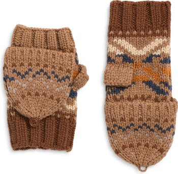 Bundling up is more fun with these plush mittens knit from cozy wool-blend yarns in a flip-back design that gives you a little more manual dexterity.