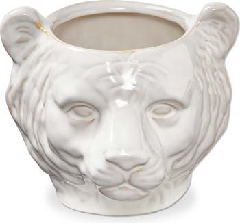 Mountain Lion Ceramic Planter White Garden Pot Indoor Outdoor