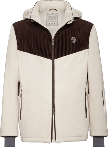 Inspired by classic materials from the world of sports, the techno fabric is light and compact, in delicate contrast with the retro feel of pure cotton corduroy, an iconic menswear fabric with a smooth, soft texture. The Thermore® padding, a lightweight, high-quality technical material, ensures a balanced weight without compromising the right amount of protection.
