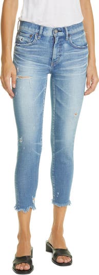 Well-loved distressing and weathered hems deliver lived-in cool on these cropped jeans cut from stretch Japanese denim.