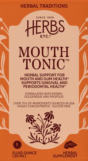 - Mouth Tonic is made with oral tissue and gum health supporting herbs, including Myrrh gum, Goldenseal root and Propolis gum. These time-proven herbs have been used for millennia to support gingival and periodontal health