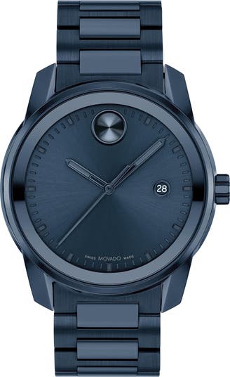 Emboldened by a sunray dial and iconic Museum dot, this tonal blue bracelet watch delivers clean, modern style with its minimalist display and polished accents.