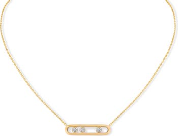 This future heirloom necklace, handcrafted in 18-karat gold, features three brilliant-cut diamonds—representing the love of yesterday, today, and tomorrow—floating in an oval pendant for sparkle that moves with you.
