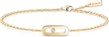 A single bezel-set diamond moves within a geometric framework on this ultraslender chain bracelet crafted from high-polish 18-karat gold.
