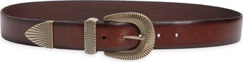 Ornate hardware puts a Western slant on this belt made from softly burnished leather.