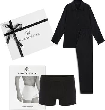 The Dornan Pajama. Comfort Set is designed to elevate everyday relaxation with softness, simplicity, and modern ease. The Dornan Pajama Set features a clean, contemporary cut paired with a smooth, comfortable fabric that feels gentle against the skin. Completing the set, the Black Micro Modal Extra Soft Boxer adds an extra layer of comfort, offering breathability and flexibility for all-day wear. Perfect for unwinding at home, slow mornings, or effortless lounging, this set blends refined comfort with practical elegance. Set Includes: Dornan Pajama Top – Black. Dornan Pajama Bottom – Black. Black Micro Modal Extra Soft Boxer. Perfect for: daily comfort, relaxed evenings, elevated loungewear, or thoughtful gifting with a modern touch.