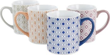 Add some pattern and color to your morning ritual with the Mr. Coffee Bliss 4 piece can shaped coffee mug set. This set comes with four can shaped coffee mugs, each with a unique geometric design in different colors for a little variety. Constructed with durable stoneware that is dishwasher and microwave safe for easy cleaning and fast re-heating. Large 20oz capacity ensures that you get your fill of your favorite beverage! Enjoy any time of year with tea, coffee, hot cocoa and more!
