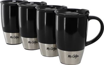 Mr. Coffee Coupleton 4 Piece 15 Ounce Stoneware Travel Mug Set  with Lid, Alternate, color, Black