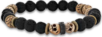 Mr Lowe Black Mix Bead Bracelet with Skull Bead Accents