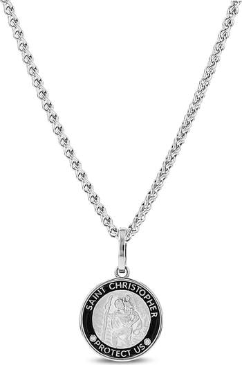 Mr Lowe St Christopher Black Enamel Pendant on Wheat Chain Necklace