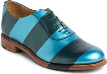 Eye-catching metallic stripes make a bold statement on this updated oxford featuring a contoured footbed and durable Goodyear-welted sole.