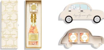 Toast to your special day with this limited-edition candy set featuring the iconic Champagne Bubbles, Bubbly Bears® Celebration Bottle and a 2-piece Candy Bento Box®