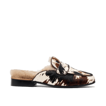 Sophistication. Comfort. These ones are special. Fully lined and trimmed with shearling lining atop luxurious hand painted uppers making each pair one-of-a-kind.