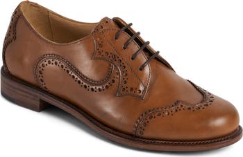 Classic broguing adds polished character to this smooth leather derby grounded by a Goodyear welt and stacked heel.