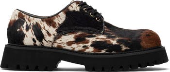 Untamed. Unexpected. Striking multicolor pony hair uppers set on lug soles make you the talk of the town. Let Luca let you live out your Western fantasies. Note: Each shoe is individually hand-painted and will not match exactly to the photos / be exactly alike.