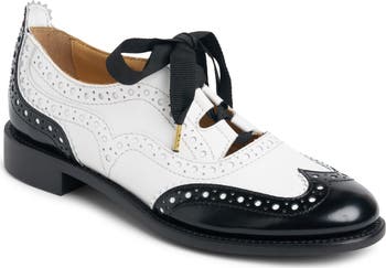 Wingtip broguing and ribbon laces heighten the vintage-inspired charm of this smooth leather oxford grounded by a contoured footbed.
