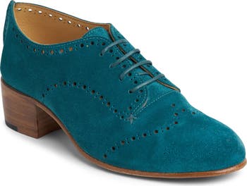 Classic broguing adds polished character to this smooth leather oxford grounded by a Goodyear welt and stacked heel.