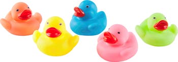 Keep bath time fun for your little one with this pack of five colorful ducks that light up when placed in water.