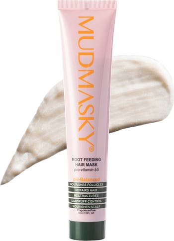 Mudmasky. Strengthening Hair Mask28% less hair loss when brushing hair* This fragrance-free hair mask contains pro-vitamin B5, flowers and premium Moroccan lava clay. It nourishes hair follicles and seals in moisture with Moroccan argan oil. After just 1 use, your hair will feel softer and easier to brush. Up to 81% less dandruff after 3 applications. Suitable for all hair types and especially dry and damaged hair (heat, colouring, bleaching). Free from harmful chemicals such as parabens, sulphates and 722 other blacklisted ingredients! *Average of 28%. Independently tested on 3 groups of 15 women aged 18 to 51. Lowest result 3%. Highest 48% less hair loss. No change in diet. 27 days. MADE IN AMSTERDAM