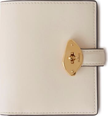 The label's new sculptural Foundry Lock distinguishes this diminutive, compact wallet that's crafted in glossy leather.