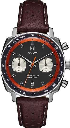 Guilloche sub-eyes and a rich leather strap punctuated by circular perforations highlight the masterful craftsmanship of this quartz timepiece complete with minimalist stick indexes.