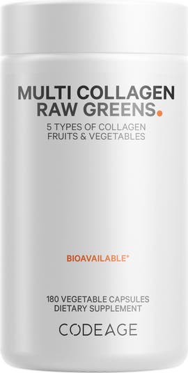 - Codeage Multi Collagen Raw Greens supplement is non-GMO, dairy, soy, and gluten-free. Each bottle comes with 30 servings for 1 month of supply.