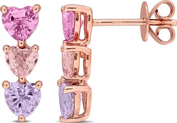 A playful arrangement of multi-color sapphires forms charming three-heart drop earrings in 14k rose gold. Their elegant design adds a touch of romance and sophistication, perfect for brightening everyday style or celebrating special occasions. A timeless pair that radiates charm and refined beauty effortlessly.