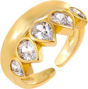 BY ADINA EDEN Multi CZ Pear Rimmed Ring, Main, color, Gold