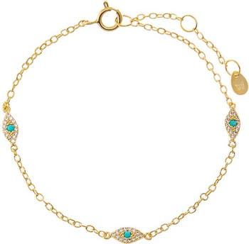 Add a dash of color and charm with the Multi Evil Eye Chain Bracelet by Adina Eden, a standout Bracelet made to impress. Crafted to shine with personality, this gold plated bracelet for women comes in Turquoise. Every day is different—this piece turns even your simplest outfit into a styled ensemble. Pair this gold plated bracelet with selections from the Cuffs & Bangles collection to complete your look with ease and style. Feels right from the first wear—and only gets better.