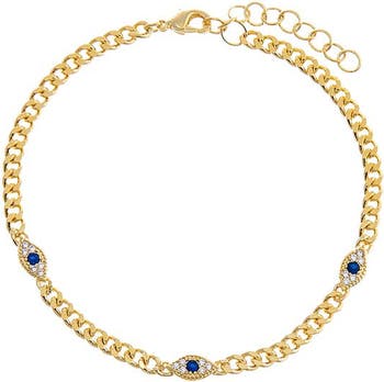 Light up your style routine with the Multi Evil Eye Cuban Chain Bracelet by Adina Eden, a brilliant Bracelet for all-day wear. Carefully crafted with a sleek finish, this gold plated bracelet for women comes in Gold to pair with your favorite fits. When your style shifts from soft to sharp, this detail adds subtle structure and polish without taking over your look. Pair this gold plated bracelet with selections from the Tennis Bracelets collection to make your everyday styling effortless. Wear it once—it proves its value from the very first outfit.
